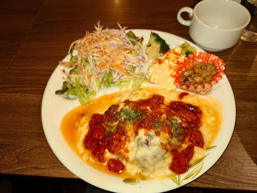 私は・・・いつも違うメニューを選ぶようにしています!今回はチーズハンバーグトマトソース♪