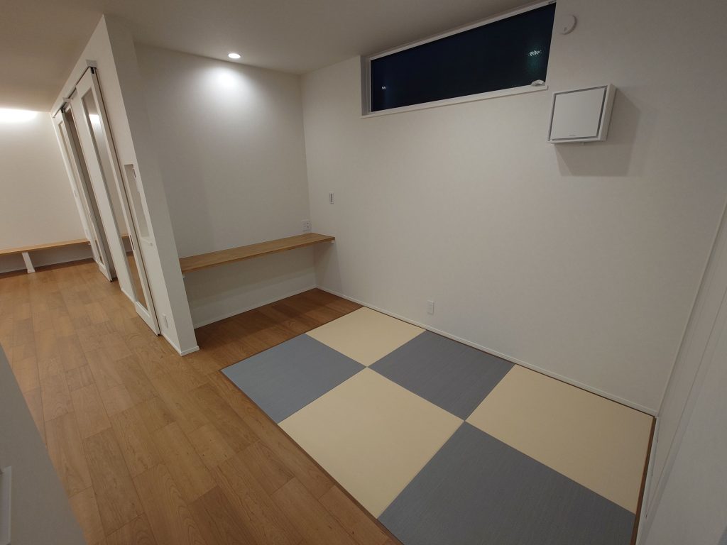 リビング横にタタミコーナーも作りました👏 あえて色味を変えた琉球畳・・・
