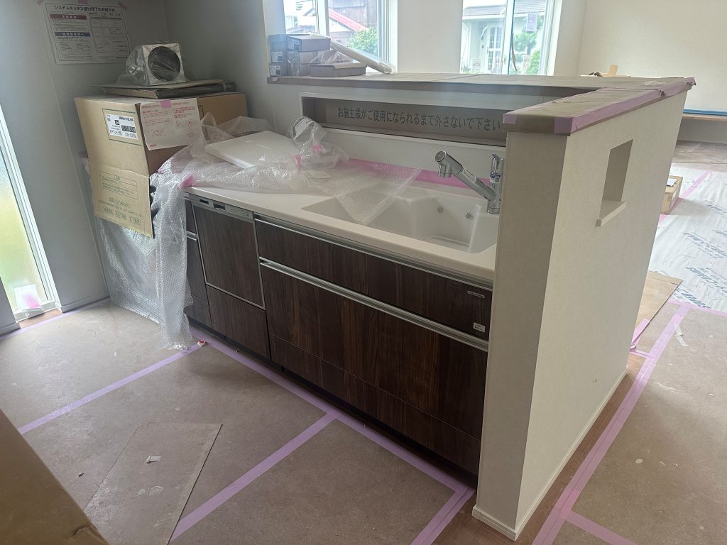 キッチン裏には造作の棚・・・標準でカップボードが設置されています!