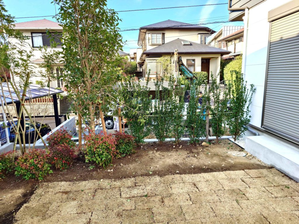 鎌倉市の風致地区に指定されている分譲地内なので規定の植栽(緑化率もクリア)工事も無事に